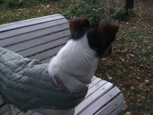 Mivel november 11-én találtam, ezt a napot neveztük ki születésnapjának. Szegényke most éppen oltással ünnepelte a jeles napot. Én pedig azzal, hogy felocsúdjak a Célállat által okozott felfordulásból. Szülinap ide vagy oda, főként azzal voltam elfoglalva, hogy eltávolítsam a kocsiból a milliárd kutyaszőrt. Természetesen a fekete kárpitba csak a fehér szálak kerültek bele, de azok aztán makacsul ragaszkodtak… Persze, Zserbó remekül érezte magát, elvégre Anyu a megnyugtatására mondókákat mondogatott neki, és ringatta, míg a dokira vártunk. Sőt, még százig is elszámolt neki, hogy elterelje a figyelmét. Szerintem jövőre már integrálni fognak a váróteremben.